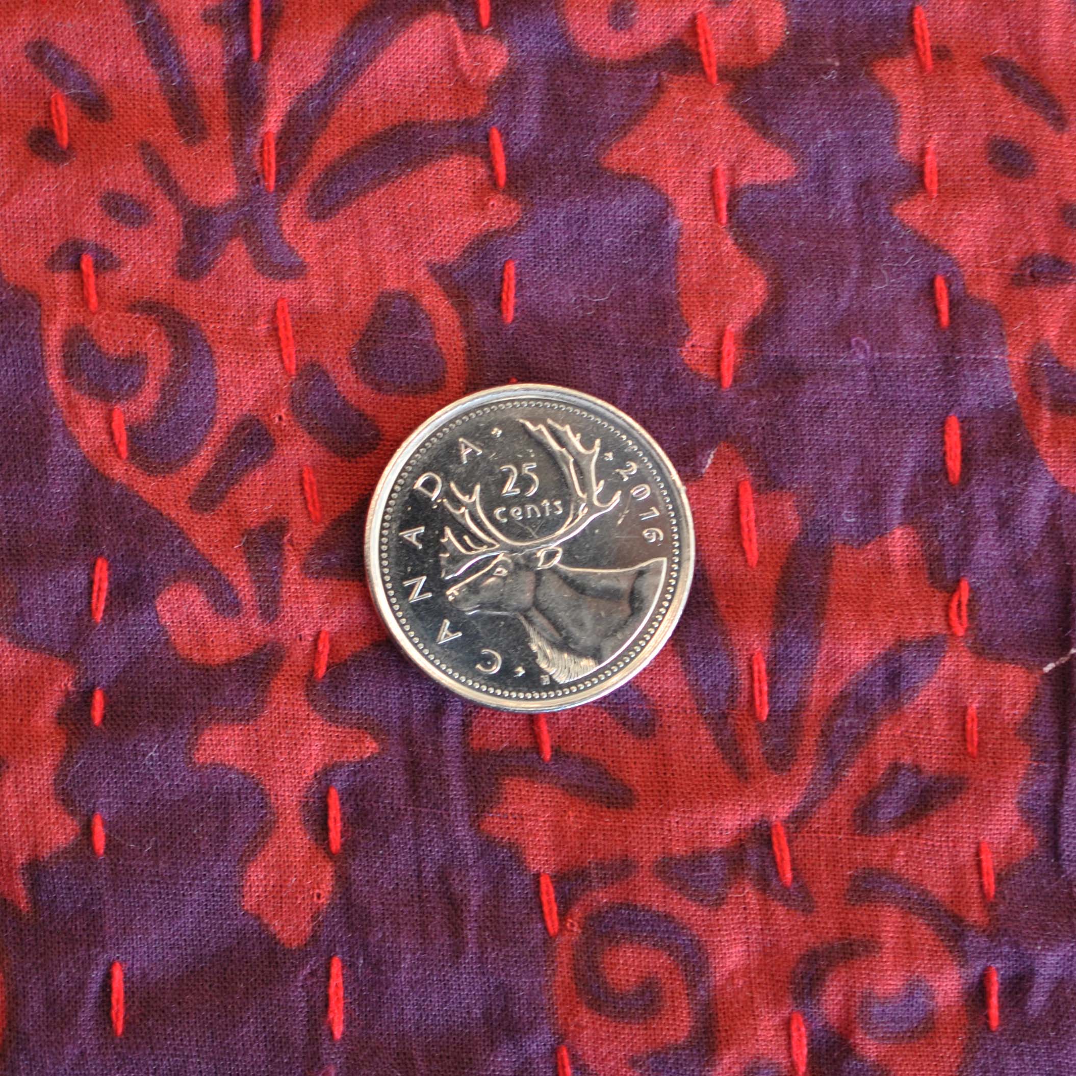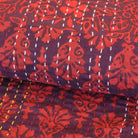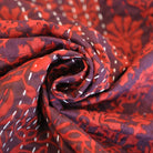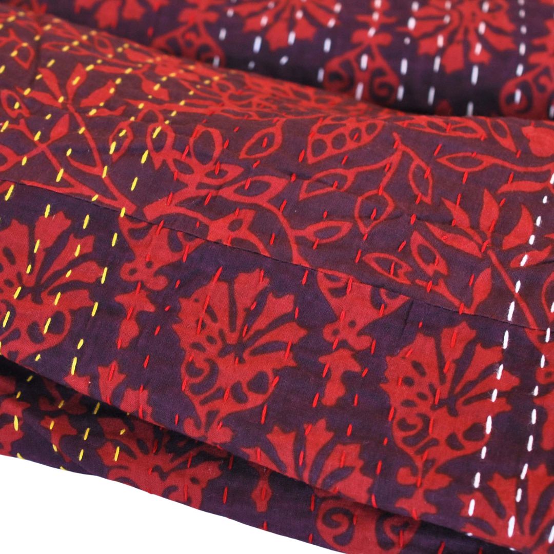 Holistic Needlecraft Kantha Damask in Wine with White, Red, and Yellow Stitching