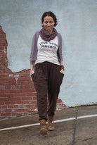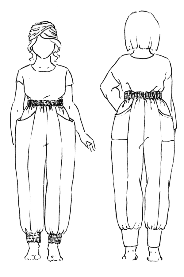 View A is designed for woven fabrics with fantastic drape. For the main pant, look for rayon challis, tencel twill, or silk noil. For the knit cuff option, you will also need 1/2 yard (0.5 m) of knit fabric with lycra or spandex content to ensure good recovery.