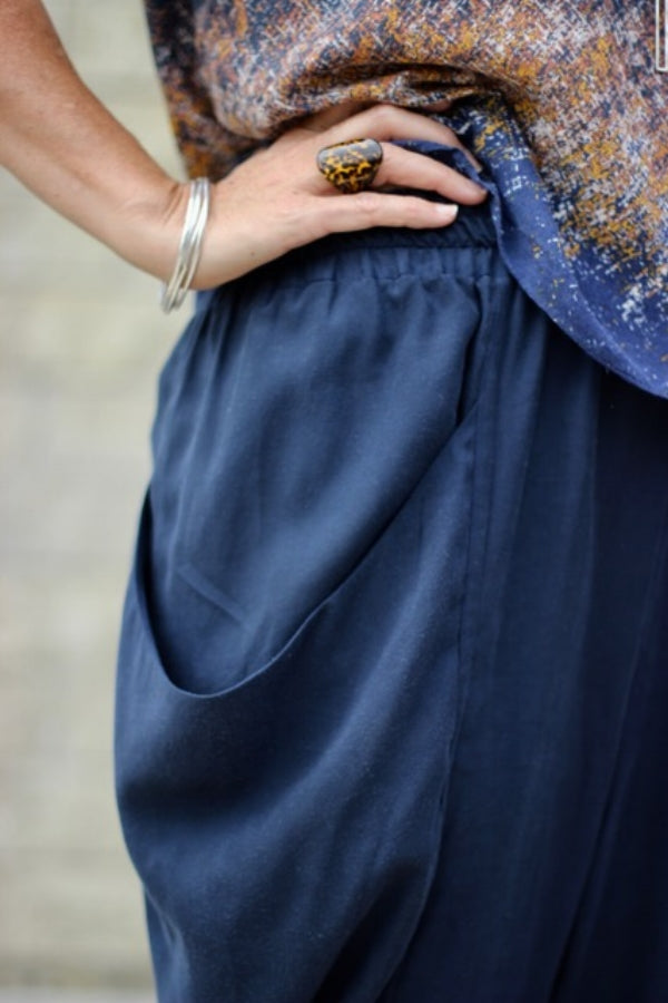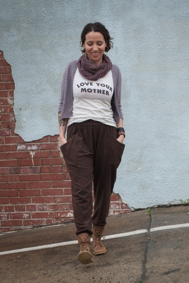 The Arenite Pants are the luxuriously deep-pocketed, slouchy pants of your dreams. Incredibly versatile and amazingly cozy, you can wear these high-waisted pants for date night, in the office, or as pajamas. The pattern includes three leg finishing options – a knit cuff, an elasticated woven cuff, or a dressier hem. Learn to sew French seams, flat-felled seams and a comfortable, non-twist elastic waistband for a made-to-last, beautifully crafted wardrobe staple. This pattern is suitable for advanced beginners. It is the perfect project for those new to sewing pants, as the fit is very forgiving.