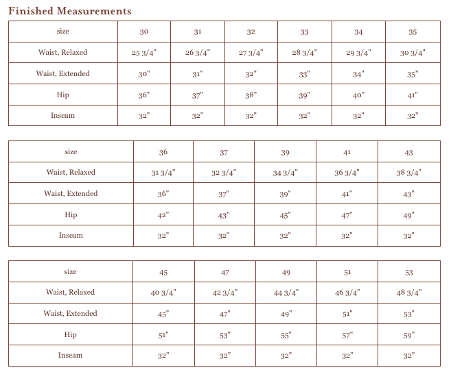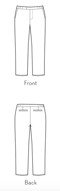 This pattern works best with lightweight trouser fabrics like cotton twill, canvas, and wool suiting with at least a little stretch. (They’ll be more comfortable with a stretch fabric, although they can be made using fabric without stretch.)