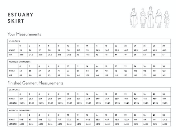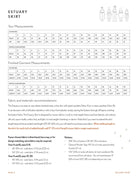 The Estuary Skirt is designed for woven fabrics. Look for mid-weight linens and linen blends, soft cottons, silk noil, rayon challis, cotton ikat, and light- to mid-weight chambray or denim.