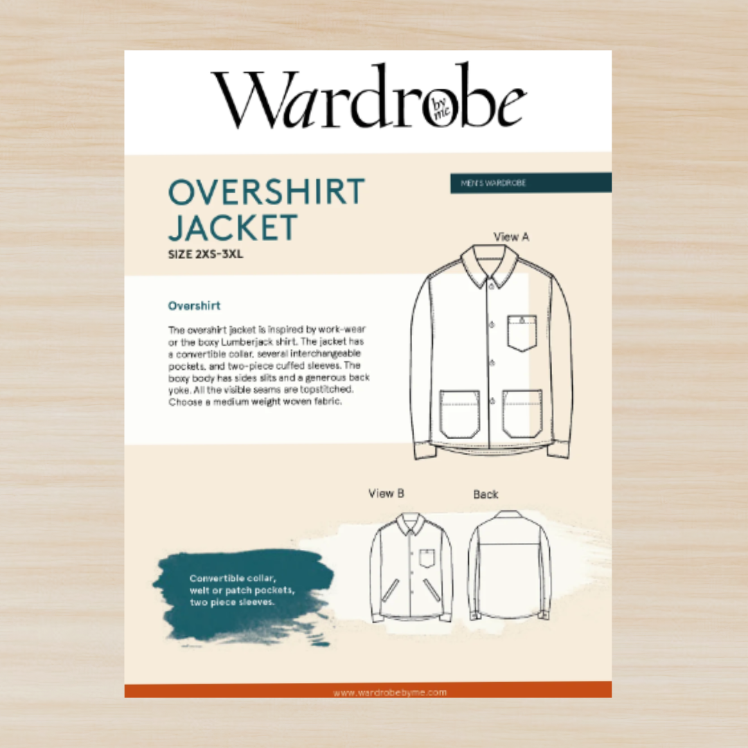 A shirt jacket inspired by workwear or the boxy Lumberjack shirt. The sewing pattern has a convertible collar, interchangeable pockets, and two-piece cuffed sleeves. The Overshirt's boxy body has side slits and a generous back yoke.