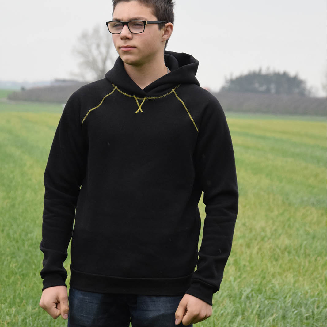 Men's Rebel Raglan Sweatshirt is a classic sweatshirt sewing pattern with raglan sleeves, rib cuffs, crew neckline, and hem band.