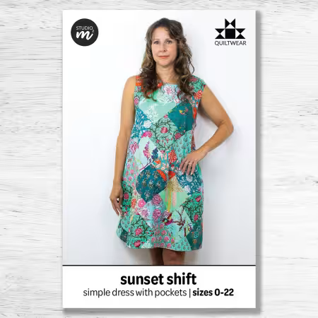 Show off your patchwork creations with our Quiltwear patterns! The Sunset Shift is a breezy, dart-free shift dress that makes summer dressing effortlessly stylish and comfortable. It features a keyhole opening at back with tie closure and inseam pockets.