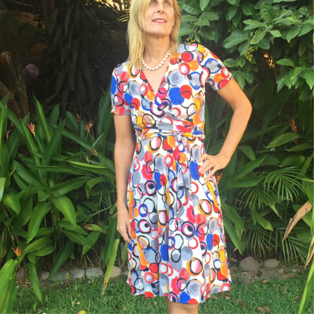 Wanda Wrap dress fitted jersey dress sewing pattern is a figure-hugging feminine jersey wrap dress.