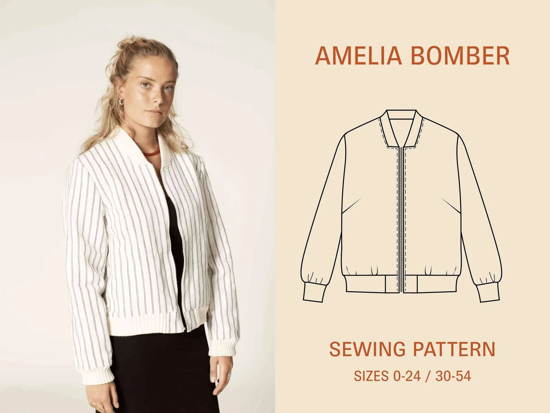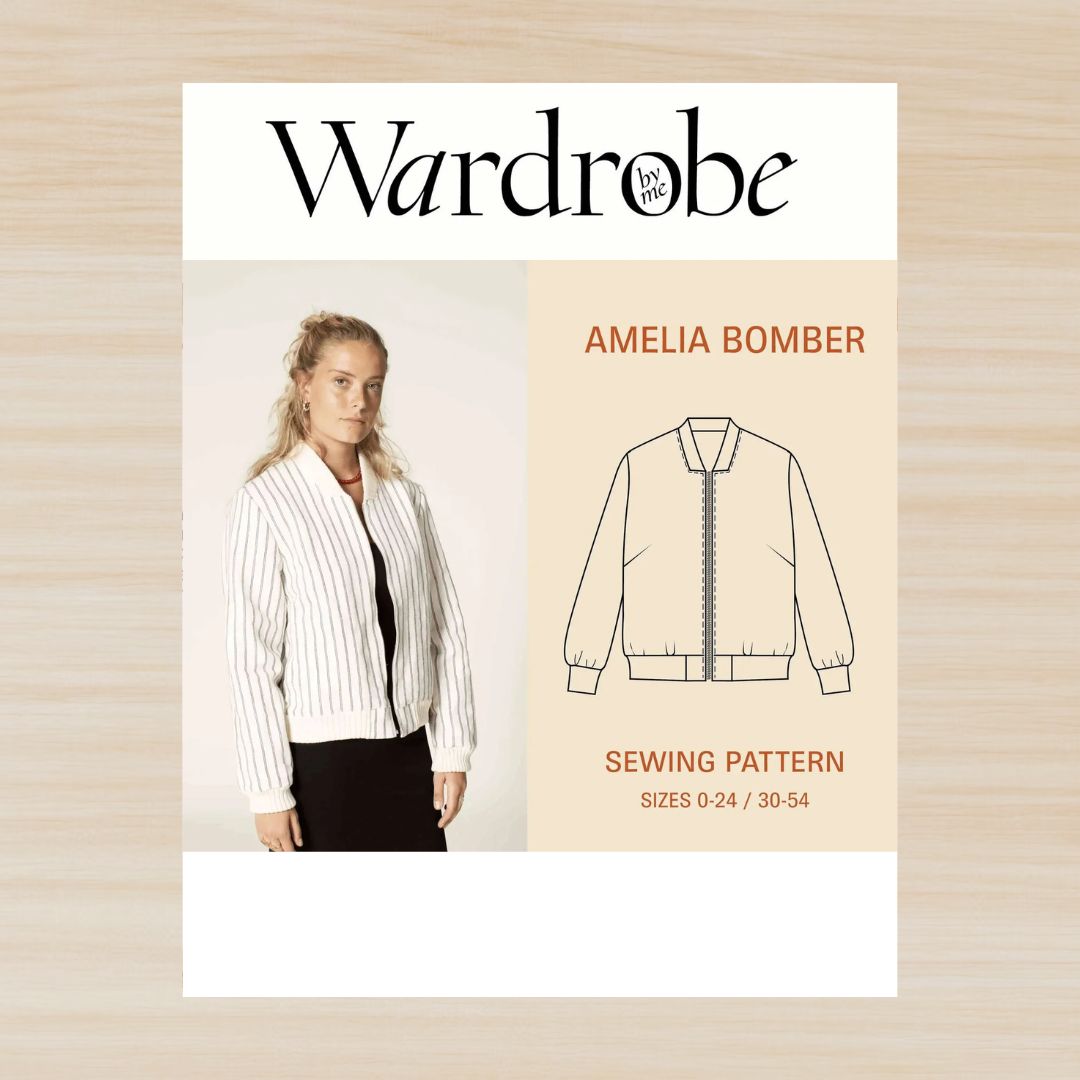 Introducing the Amelia Bomber jacket sewing pattern, a unique and stylish garment designed to make a statement. Perfect for woven fabrics with rib details, this pattern is available in sizes 0-24 / 30-54. The bomber jacket features a slim and fully lined silhouette, offering style and comfort.