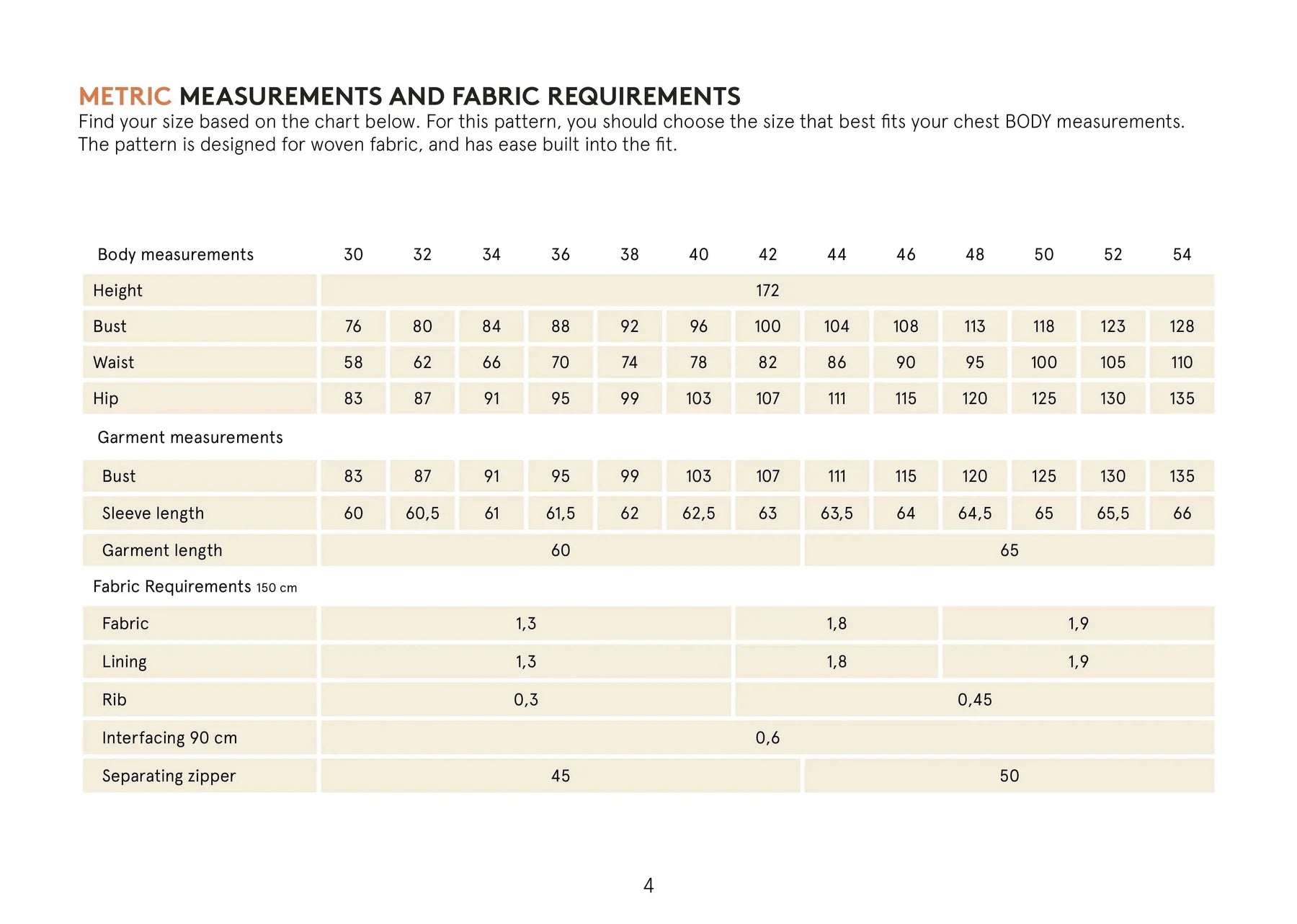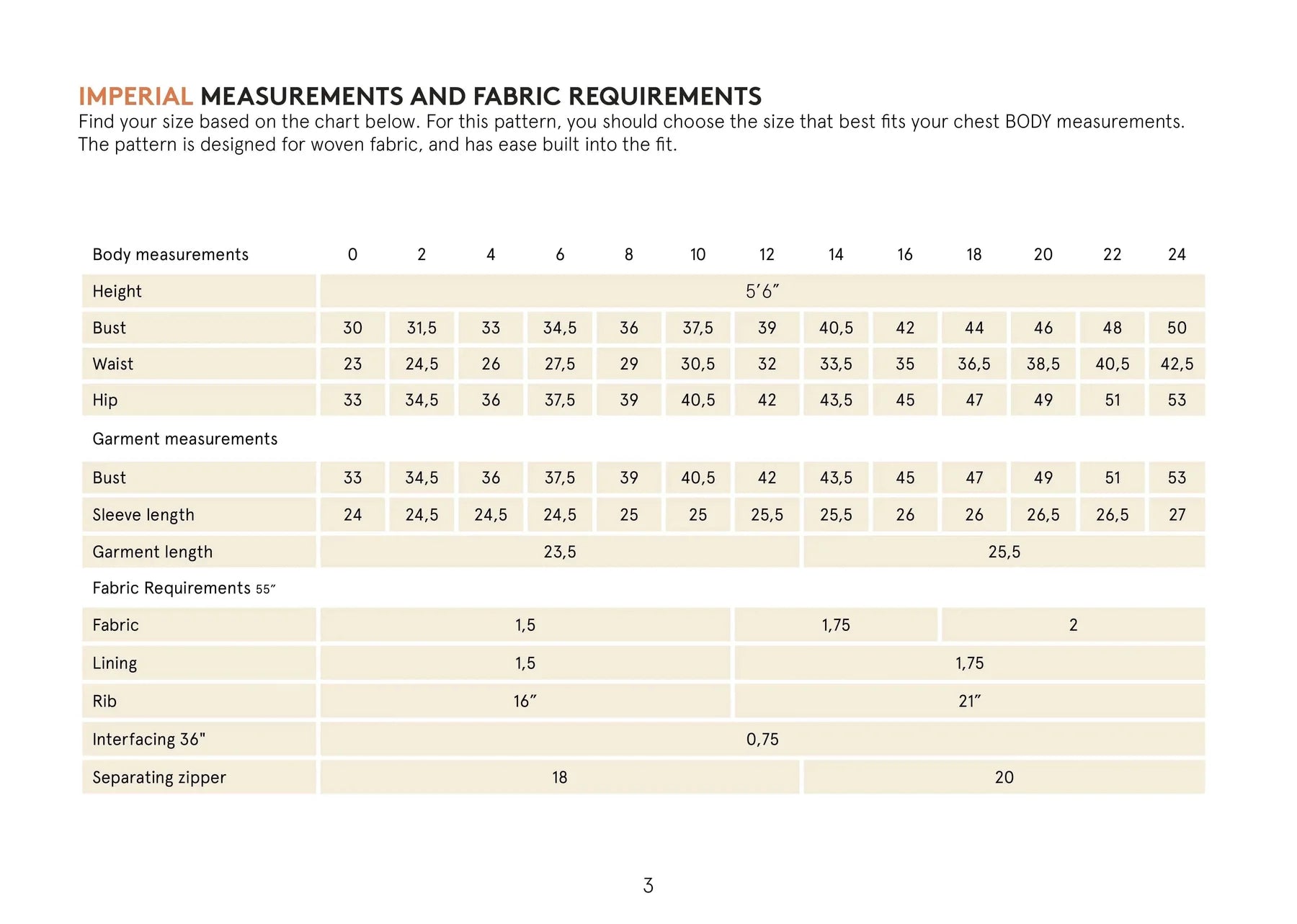 Notions: Fusible interfacing for added structure. A separating zipper and Sewing thread.