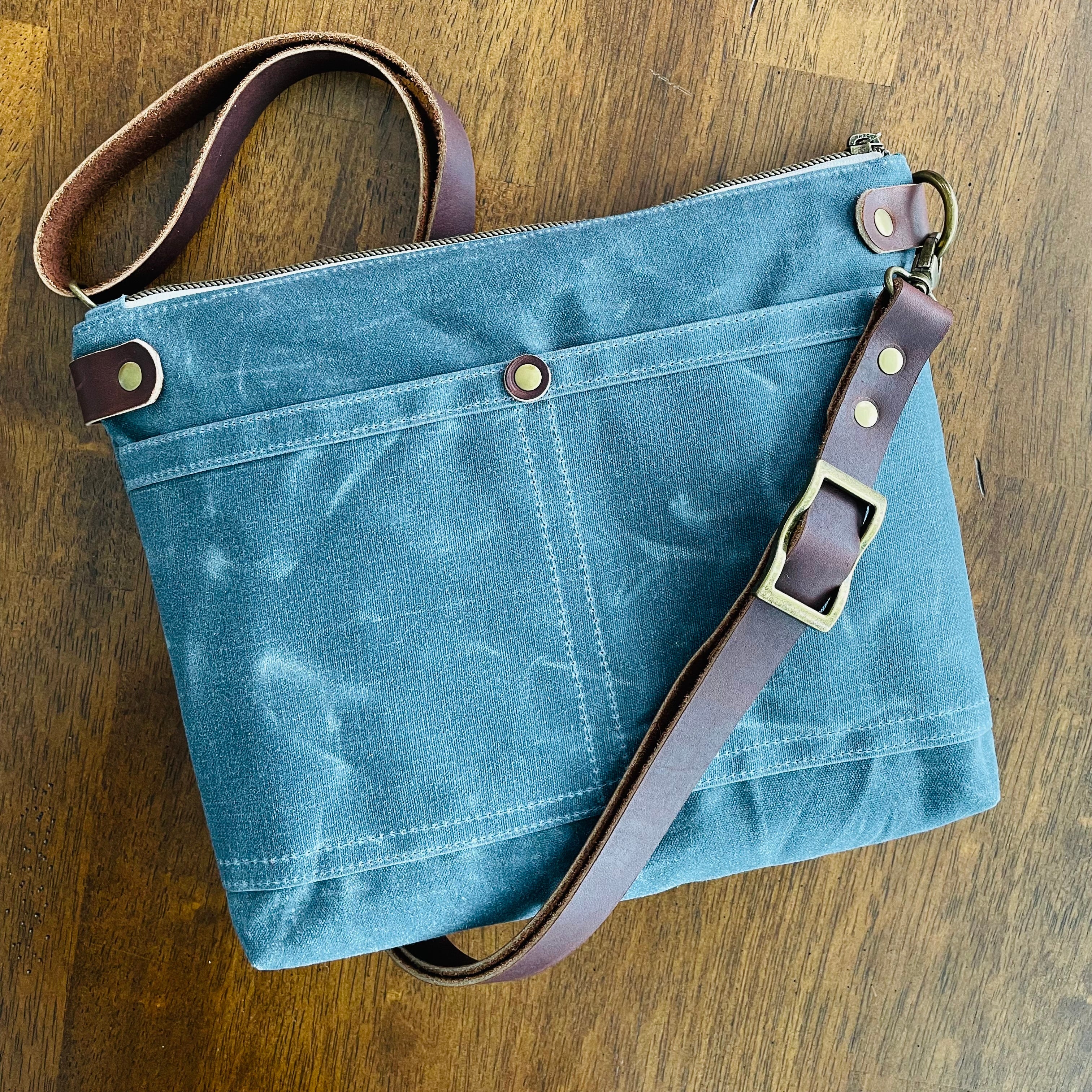 The Cambridge Bag is a minimalist waxed canvas purse with five pockets and an adjustable crossbody strap. It can be made in two sizes, with a canvas or leather strap. The large size is a great everyday purse, and the small bag is perfect for when you just need to carry the essentials.