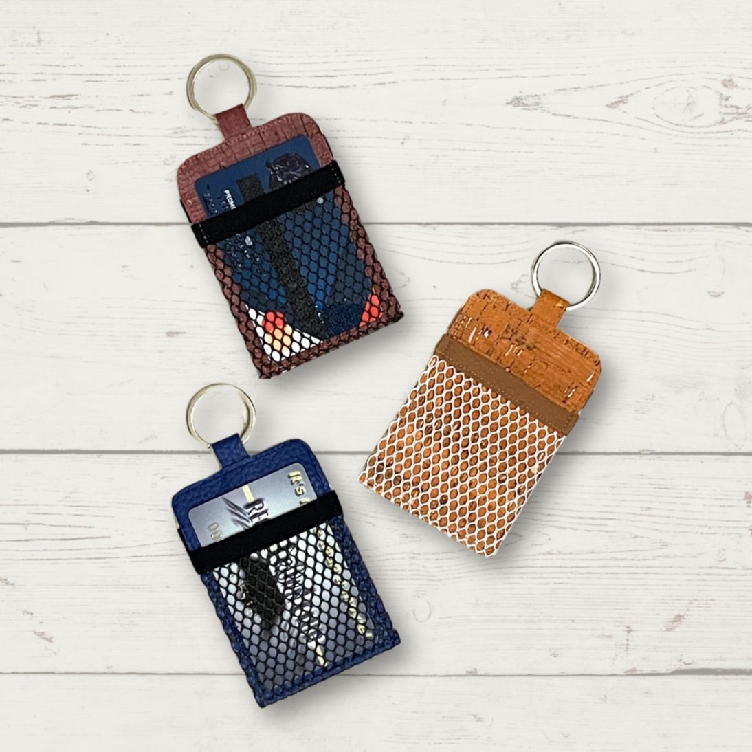 Mesh pockets on each side with nested side seams hold credit/debit cards and ID. Great for gifts. Scrap-friendly.