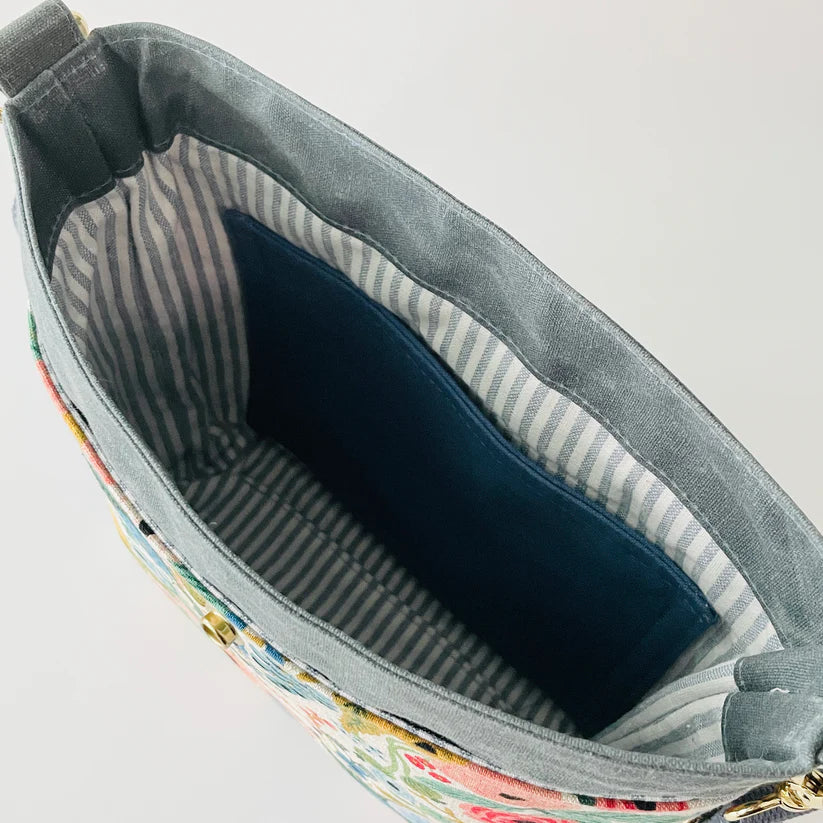The Sequoia Satchel is a small messenger-style crossbody bag with four pockets. A perfect project for waxed canvas, tweed, or your favourite designer print. The bag has two front closure options: an adjustable front strap or a heavy-duty snap.