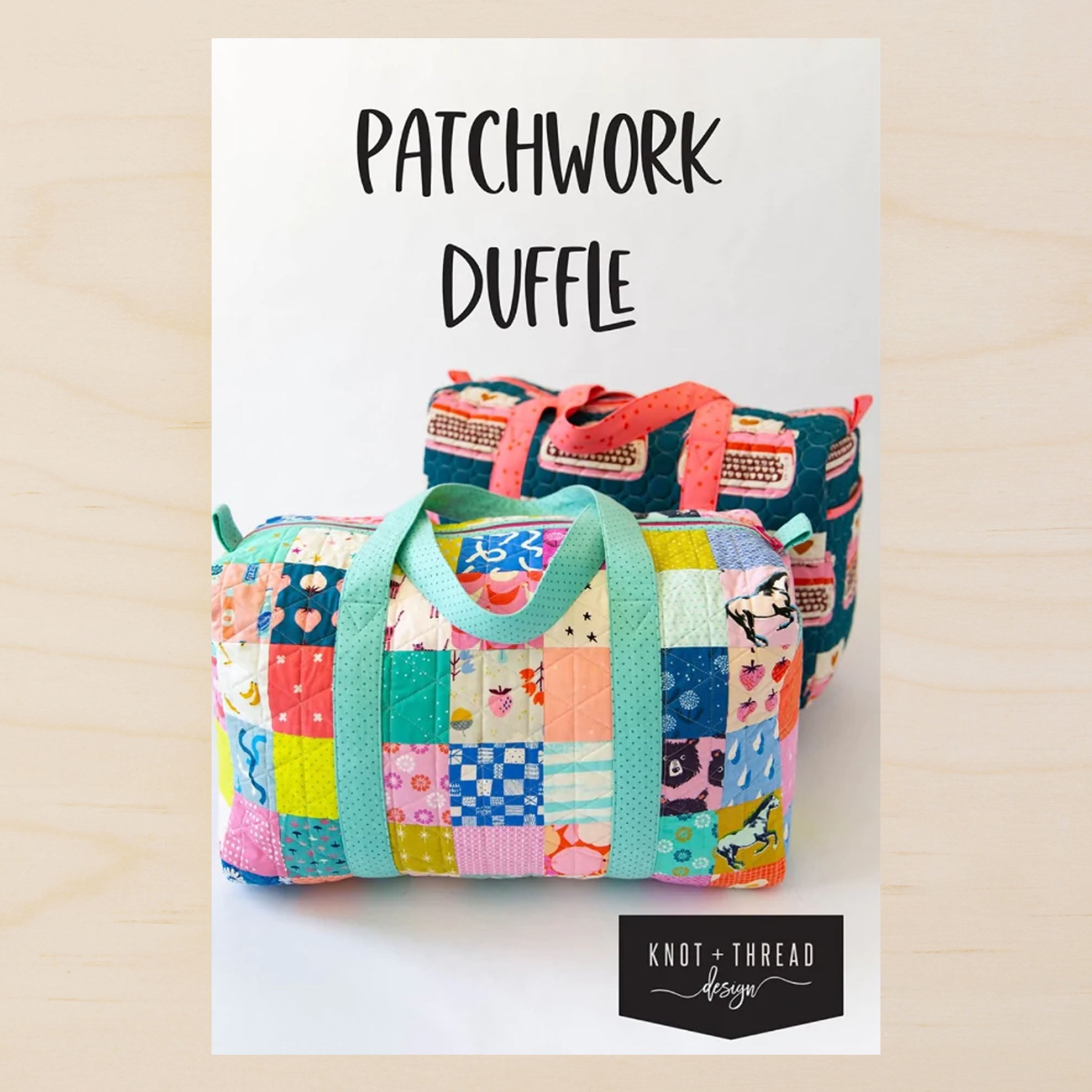 You really can carry it all with this giant duffle bag! Choose between a solid exterior fabric or scrap it up with some patchwork. There are two exterior pockets. Fill it up and take it on a trip! 12"H x 20.5" W x 9" D