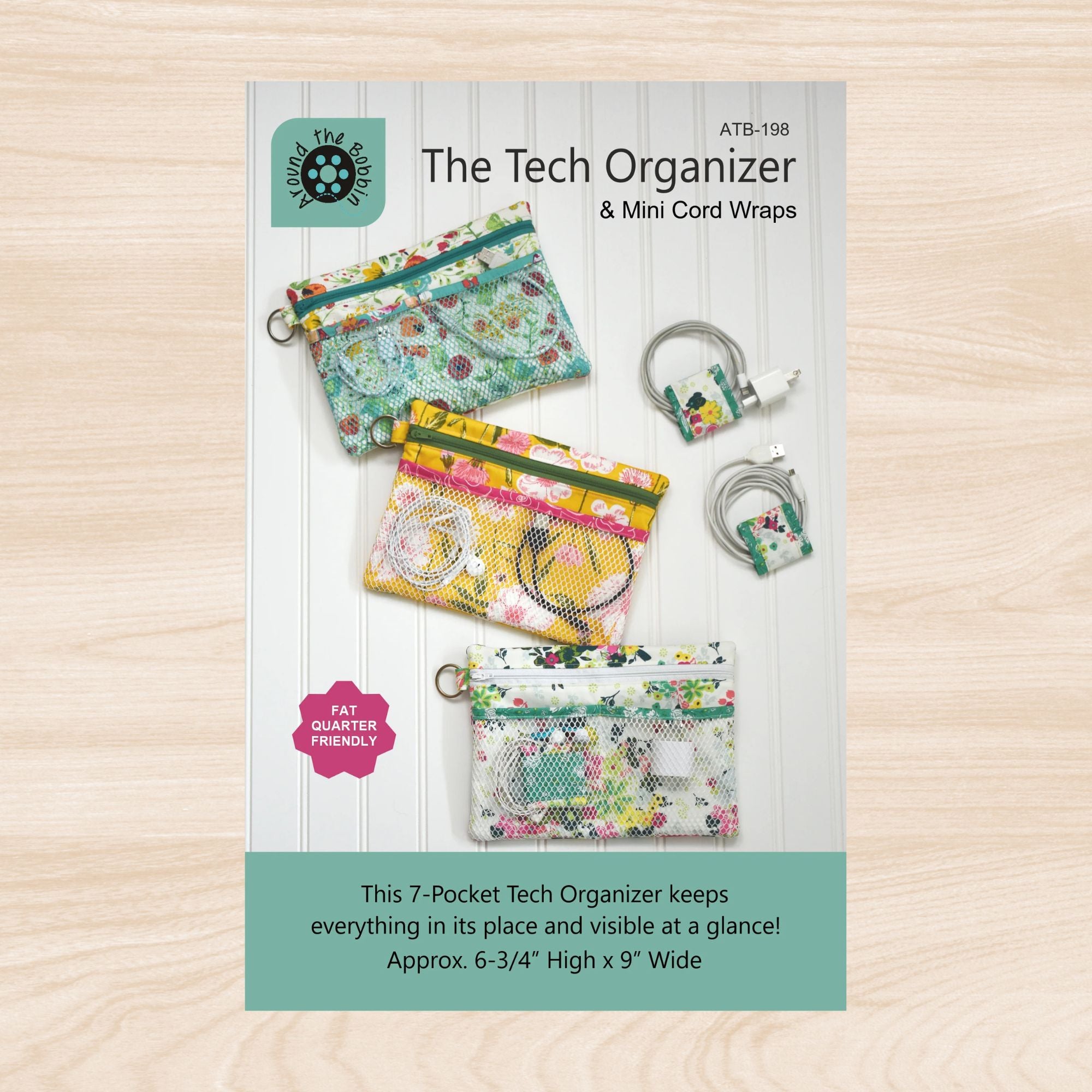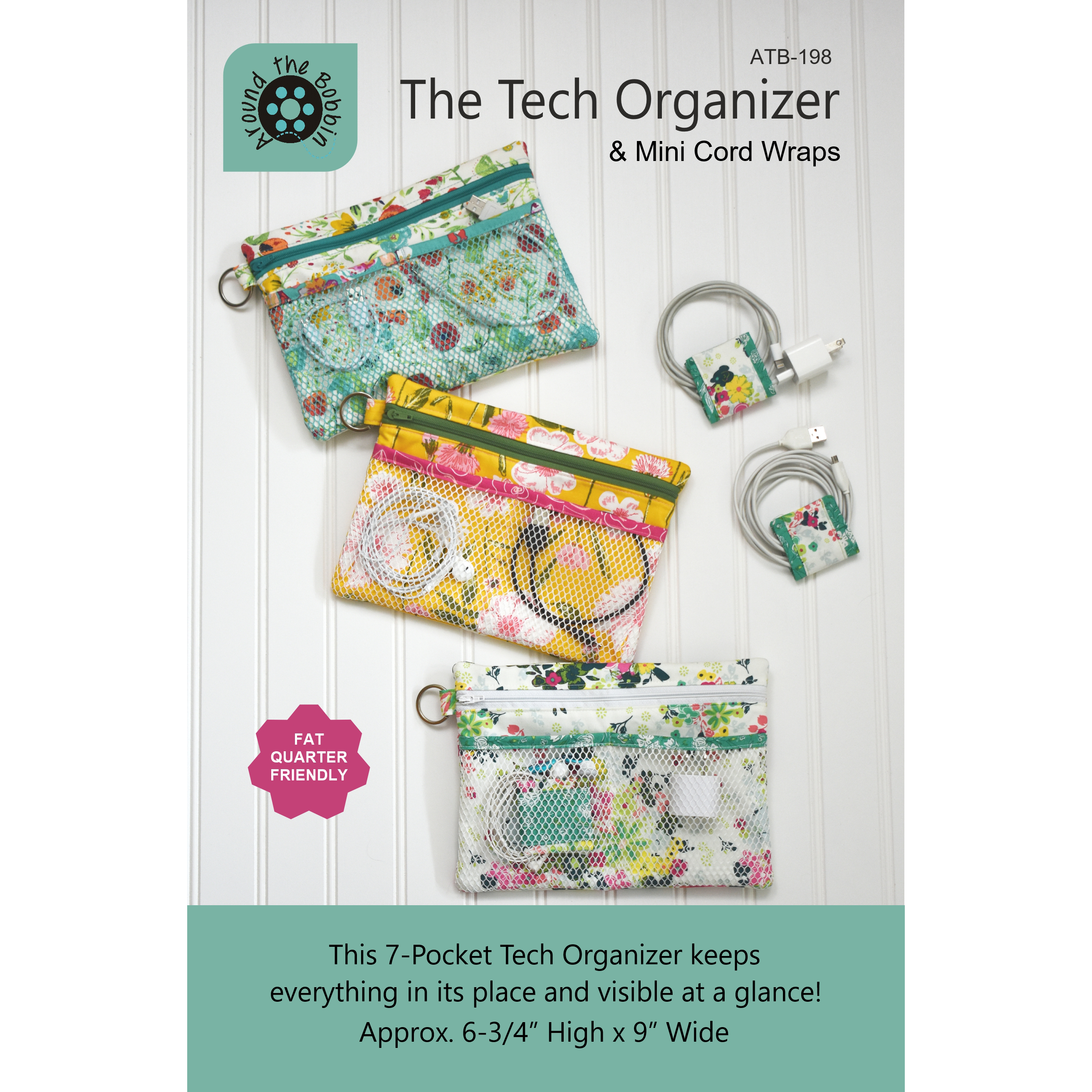 This fat quarter friendly Tech Organizer will take away the headache of lost and tangled cords. With 6 slip mesh pockets, 1 zip pocket, and the main compartment, there is plenty of room for ear buds, phone cords, a battery charger and cord, and much more. Easy zip pocket technique.