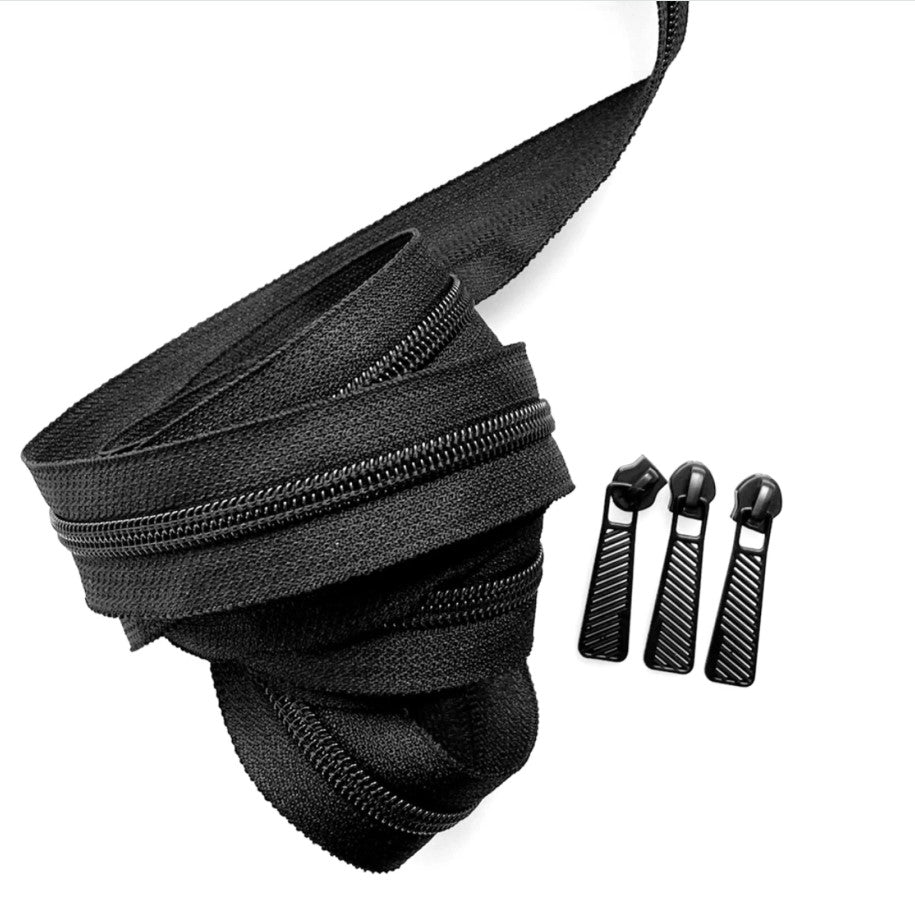 #5 Zipper Tape by the Yard - 3 Yards Nylon Black Coil with 9 Pulls