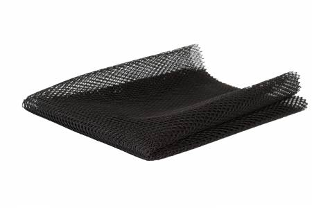 25 oz per sq. ft. 100% polyester and specially coated to be less slippery and easy to sew. Terrific for pockets, on bags or anywhere you want to be able to see what you are storing.