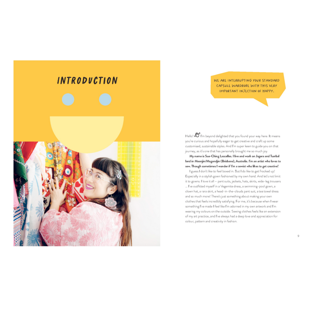 Known for her playful sense of style, Sue-Ching's projects will bring a smile to your face, whether it is her famous tea towel dress, a bandana cap or a shrimp plush made out of scraps. This book is all about having fun, embracing the making process and creating unique, joyful garments that make you feel happy.