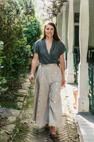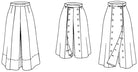 At the turn of the 20th century enterprising equestrian women, such as rodeo star Fanny Sperry Steele (1887-1983), wore a divided skirt, or split skirt, that enabled them to ride astride, but preserved the "look" of a skirt. This garment is actually a culotte with a movable front panel that buttons either to the left, for a skirt effect, or to the right for a pant effect. This sewing pattern has a deep center back pleat conceals the legs, providing plenty of fullness and assuring a smooth hipline. Double front plackets on either side of the front panel are secured with buttons, which extend down to the hem. We've added side seam pockets, not provided on the antique original.
