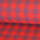 A scarlet red and grey/purple gingham.