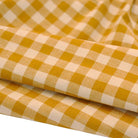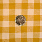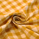 A lightweight summery cotton/linen blend gingham in warm white and ochre yellow.