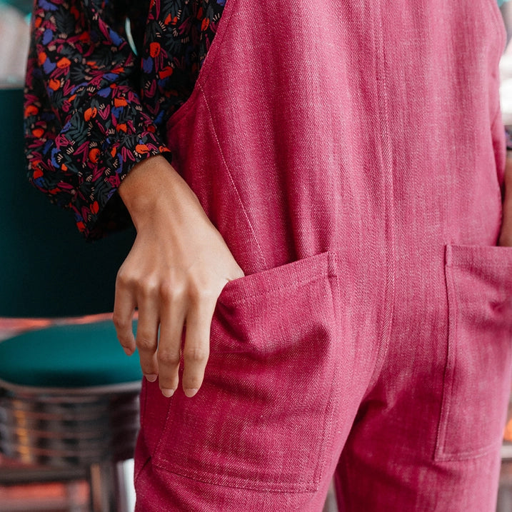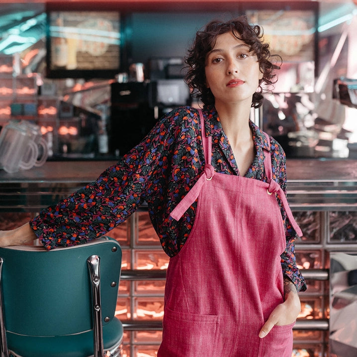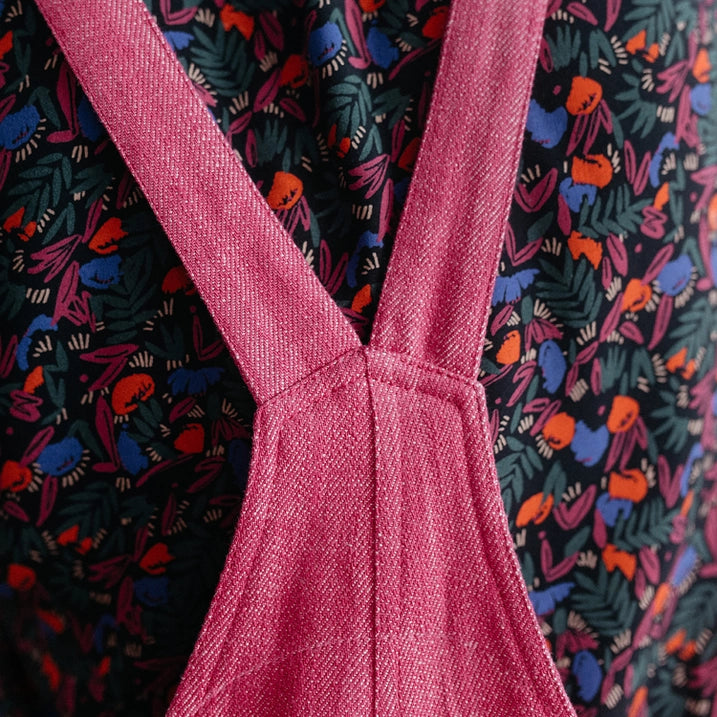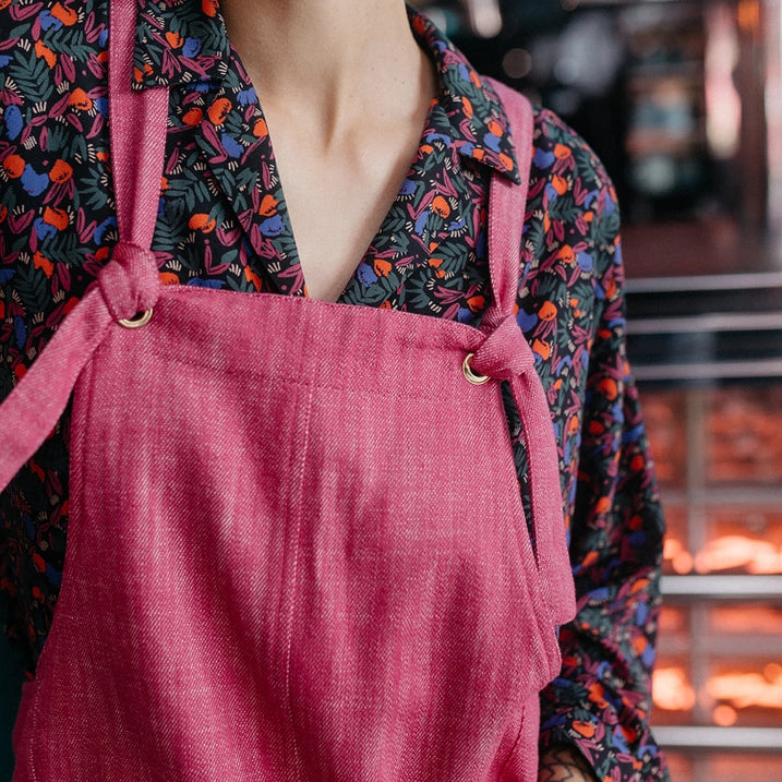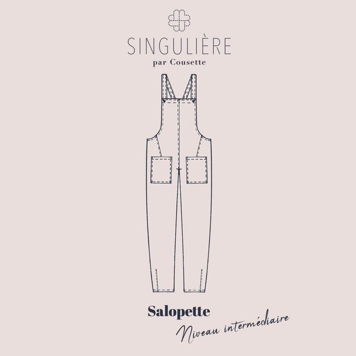 Overalls sewing pattern. Here are THE singular overalls, easy to wear and a pleasure to sew with all these beautiful details. Two large clips highlight the silhouette and add a feminine touch to the model. The lower leg is also tapered thanks to pliers. Large patch pockets provide comfort and rhythm to the entire figure.