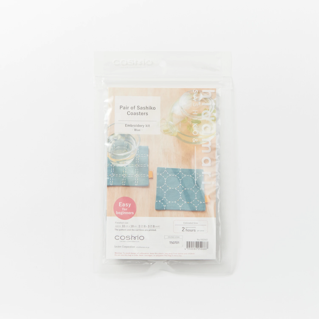 Cosmo Sashiko Coaster Pair Kit - Blue