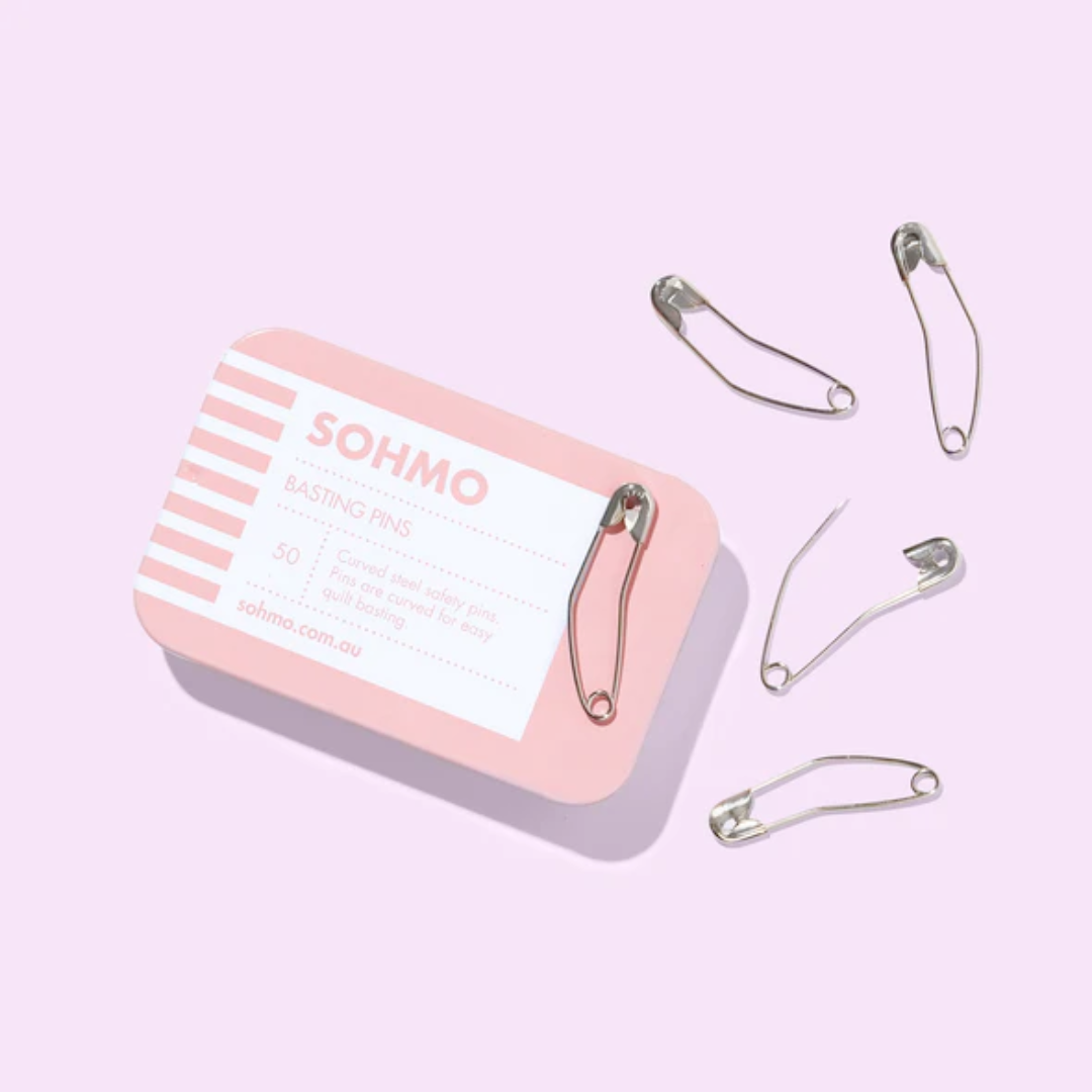 SOHMO Basting Pins are curved safety pins designed to make quilt basting easier and more comfortable. Made from nickel-plated steel, they’re sharp, sturdy and just the right length for securing quilt layers without shifting. The gentle curve helps guide the pin through multiple layers of fabric with minimal effort.