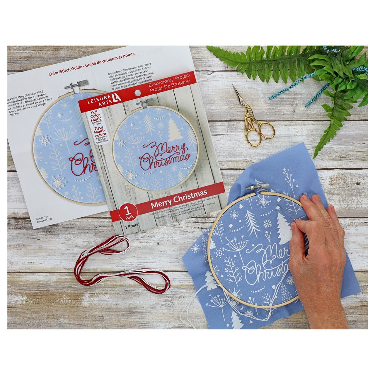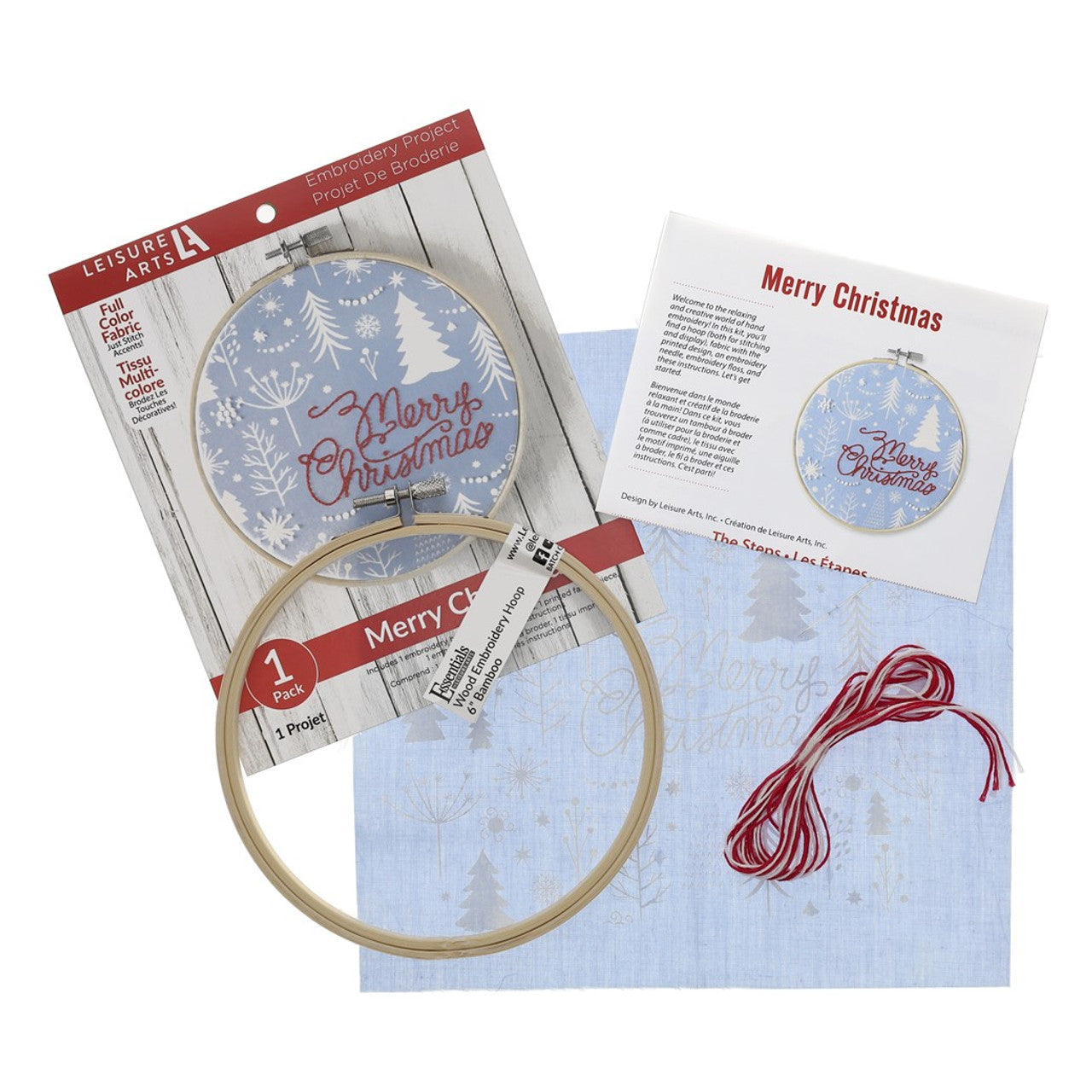 Includes 6" wooden embroidery hoop, embroidery floss, printed fabric, embroidery needle and full-color, step-by-step instructions.