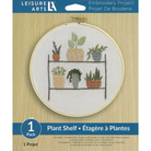 Leisure Arts Embroidery Kit 6" Plant Shelf- Printed embroidery design features a 2 tier shelf with 6 different potted plants.