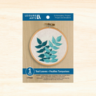 Design shows two overlapping leaf sprigs, one dark teal one light teal. A perfect way to add color to any room.