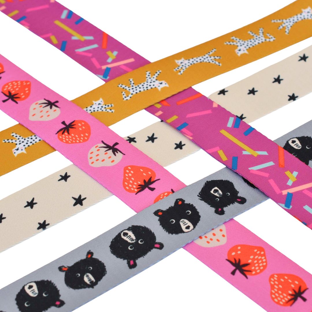 Check out this cheerful webbing! The perfect width for any tote bag, backpack, purse, or even a belt! The colourful patterns give this webbing a youthful aesthetic that turn any project into a fun and unique item!