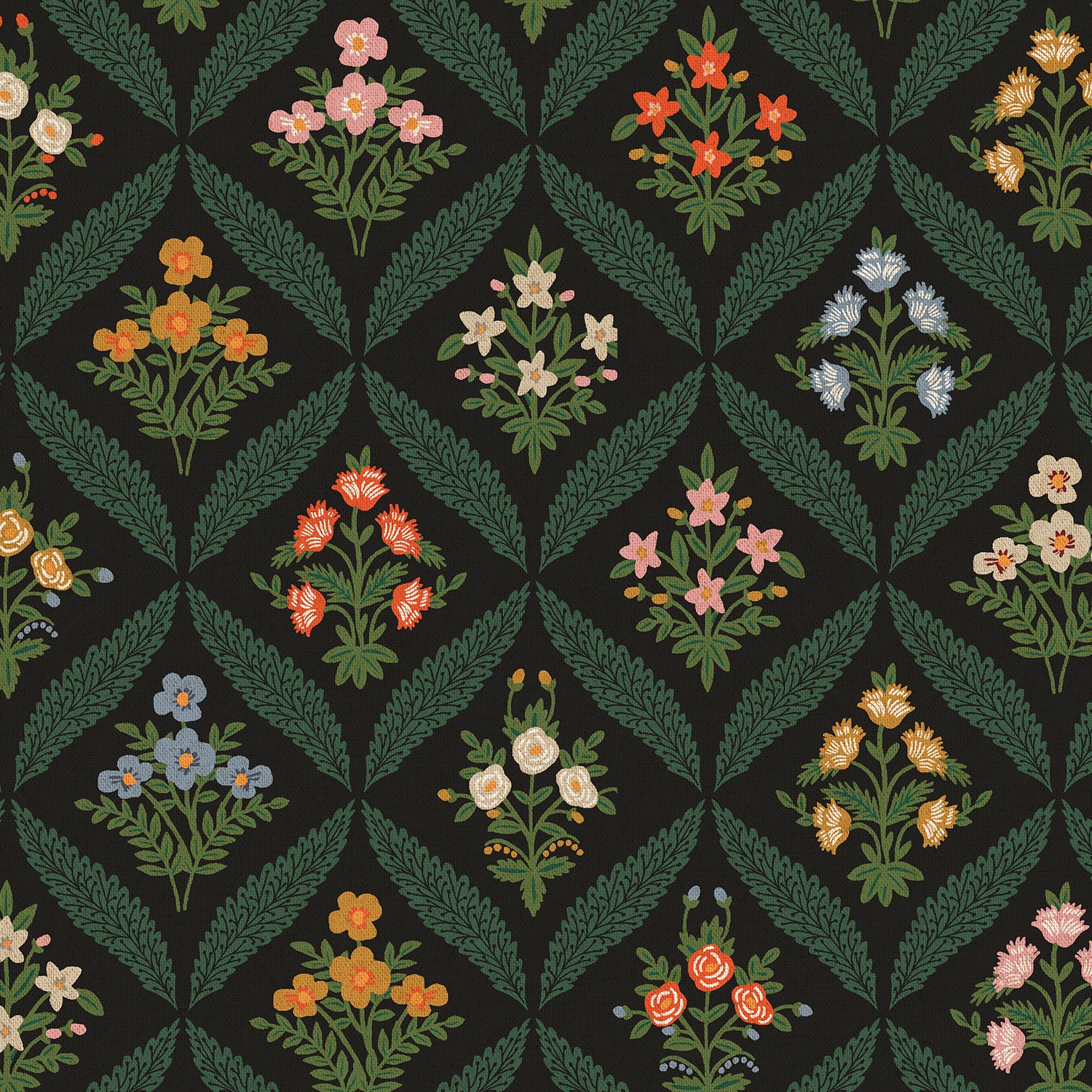 Rifle Paper Co. Dahlia Cotton Linen Canvas Estee Garden in Black Multi