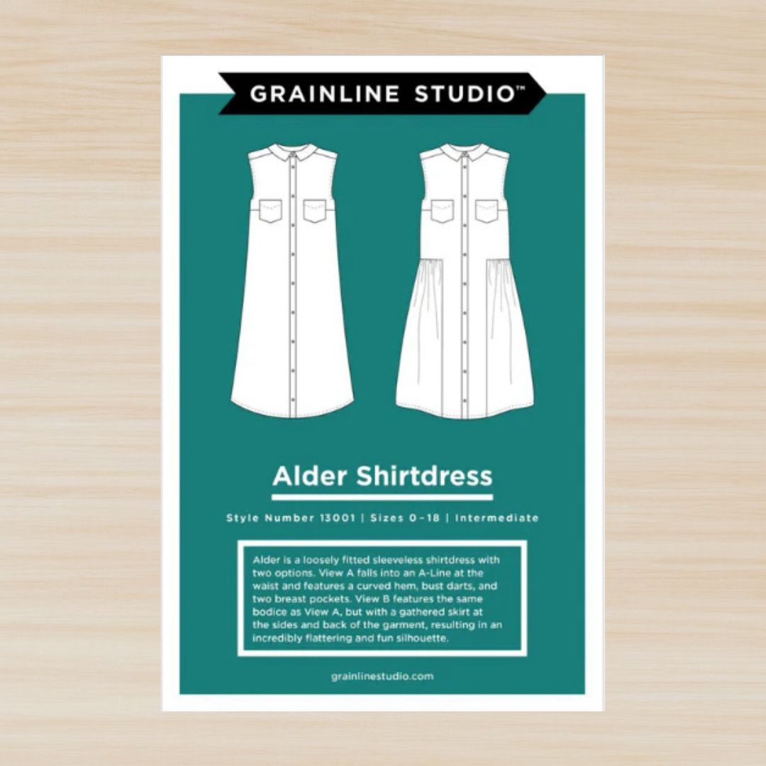 Alder is a loosely fitted sleeveless shirt dress with two options. View A falls into an A-Line at the waist and features a curved hem, bust darts and two breast pockets. View B features the same bodice as View A but with a gathered skirt at the sides and back of the garment resulting in an incredibly flattering and fun silhouette. The Alder Shirtdress is a perfect breezy option to keep cool while looking great all spring and summer long or throw on a cardigan or blazer and you’re all set for fall and winter!