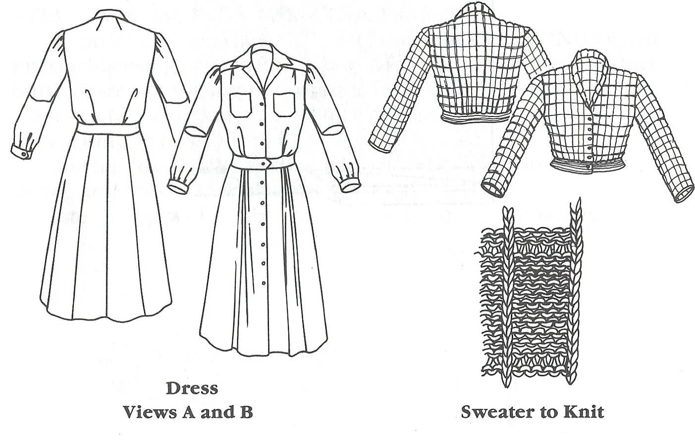 Folkwear's Sporty Forties' Dress and Sweater patterns are classic examples of the ingenuity of the 1940s fashion designers. They faced fabric shortages, government regulations, and the perennial desire of women to still look their best even in wartime. There was a sense of patriotism, even in fashion. The government asked designers not to use unnecessary amounts of fabric, not to make extreme changes, and not to indulge in excessive trimming. The British Board of Trade conceived of "utility clothes", which were to be simple, practical, agreeable to look at, and inexpensive. The clever results are a tribute to the designers' art.
