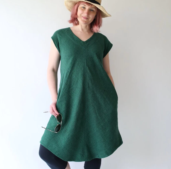Emerald is a simple shift dress or top designed to offer comfort in the summer heat. I envision it with sandals and a hat on hot days, or layered under a warm sweater or cowl as the the seasons change and the days turn cool.
