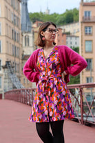 – Presented in a folded collar version, we also offer two extensions for this model in PDF version on our website: a V-neck version decorated with a knot and a shirt collar version.