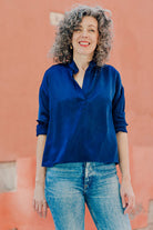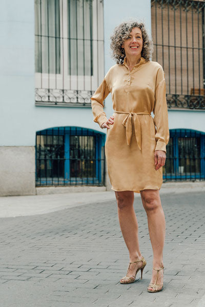This effortless and sophisticated top and dress includes a band collar, popover button placket, and dolman sleeves. It’s cut loose with dropped shoulders and a box pleat at the center back. The top (View A) has cut-on dolman short sleeves, while the dress (View B) includes a self tie, curved shirttail hem, and long sleeves with classic cuffs. This is an all-season style that will be extremely versatile in your wardrobe.