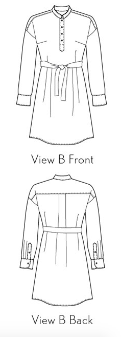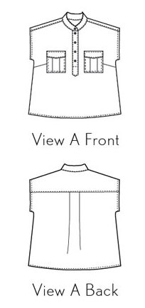 Notions: Coordinating thread, featherweight fusible interfacing, 1/2" buttons (four required for View B; an additional five are optional for the front placket of both views).