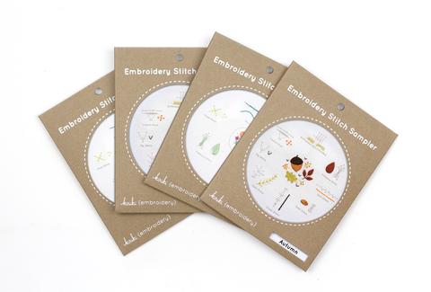 The Beginner Embroidery Stitch Sampler is a great introduction to basic stitches used in Kiriki Press and other embroidery patterns.