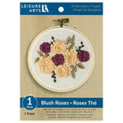 Kit includes: 1 wooden 4" embroidery hoop, 6 embroidery floss colors, 1 printed 7"x 7" fabric piece, 1 needle, and instructions in both English and French.