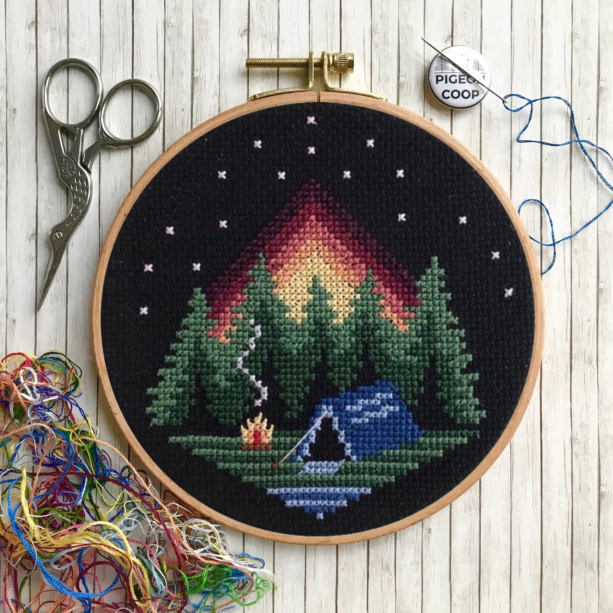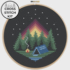 Get ready to stitch your dream camping spot with this fun and cozy cross stitch kit! Picture a vibrant geometric sunset above a snug tent tucked away in a peaceful forest. It's your perfect getaway—no hiking boots required! Create your own little slice of outdoor magic, one stitch at a time.