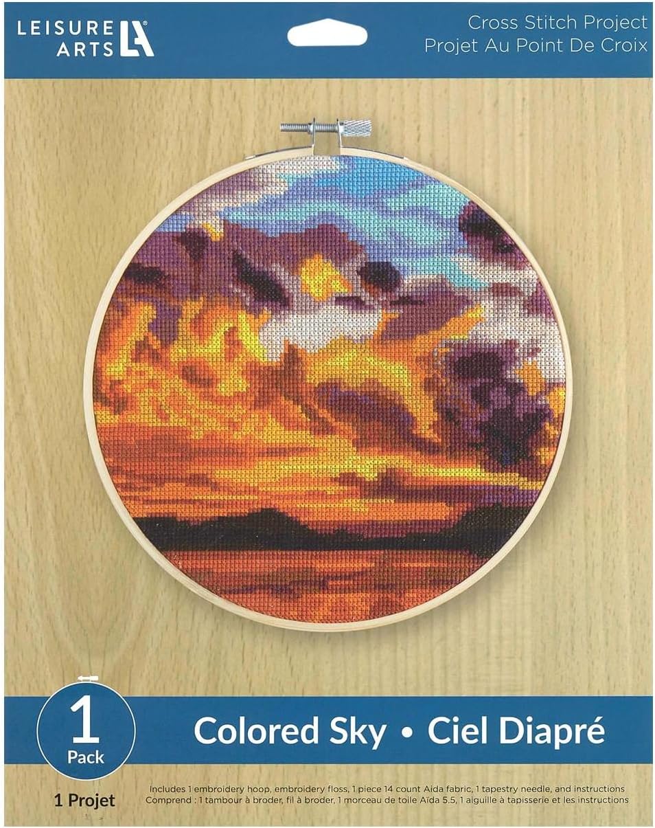 Includes 8" wood embroidery hoop, embroidery floss, white 14 count Aida fabric, a tapestry needle, diagrams and step-by-step instructions.