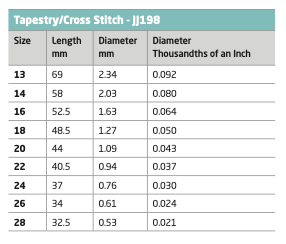 The needle is an embroidery needle with a blunt round point this ensures no worked stitches or fibres are split whilst sewing on top of the finished work.The diameter of the needles makes them suitable for bead work.