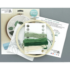 Embroidery kit contains: 6" embroidery hoop, 4 floss colours, 1 pre-printed organza fabric piece, a needle, and instructions.