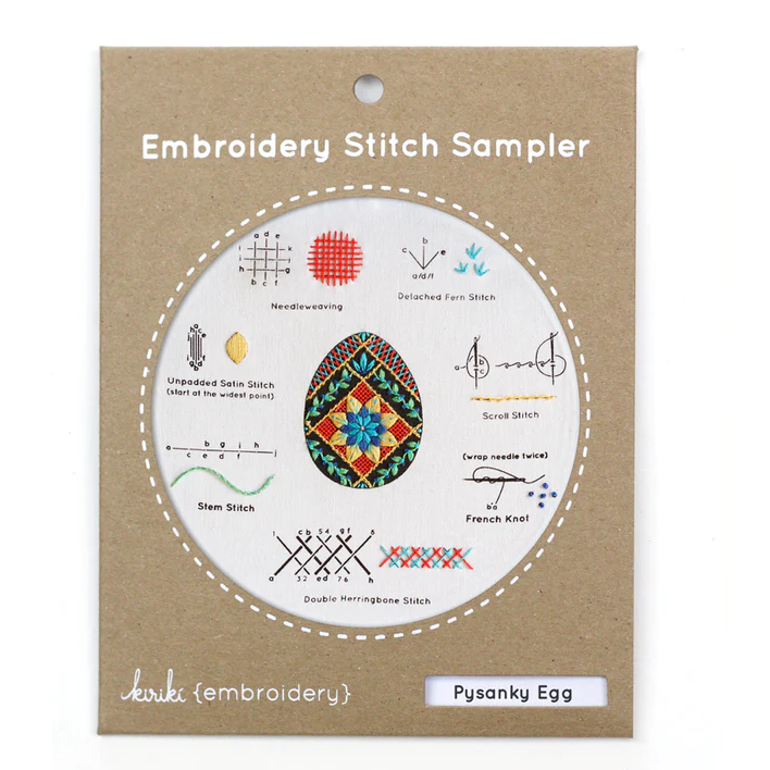 The Pysanky Egg Embroidery Stitch Sampler is a great introduction to stitches used in Kiriki Press and other embroidery patterns.