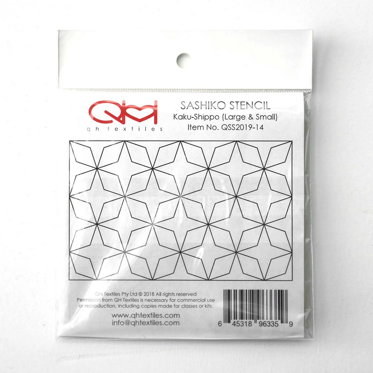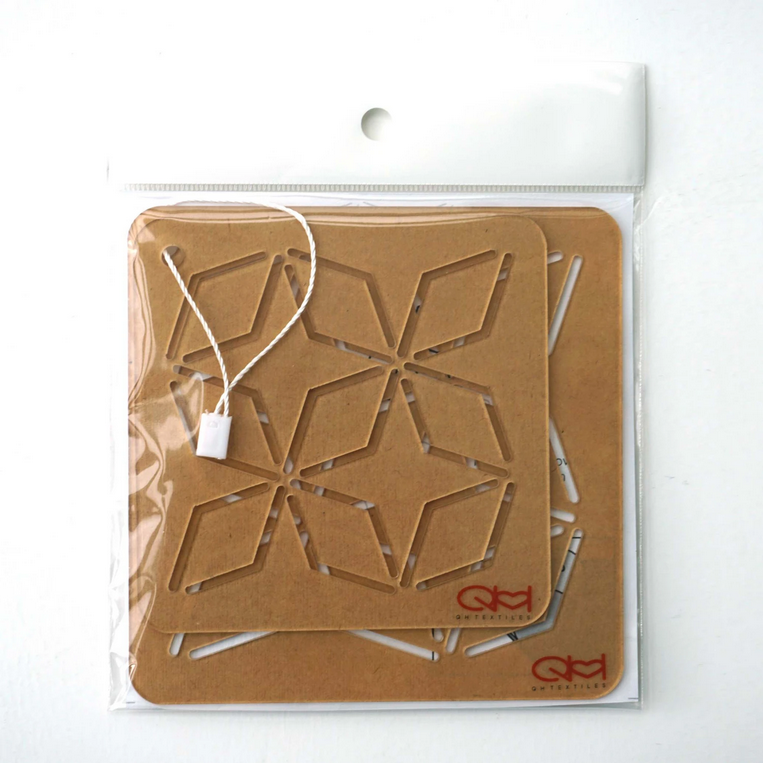 Sashiko & embroidery stencil for your personal project. This stencil can be used with Clover water-soluble pencil. Comes with 2 sizes of the same design: 4.5in x 4.5in and 4in x 4in.
