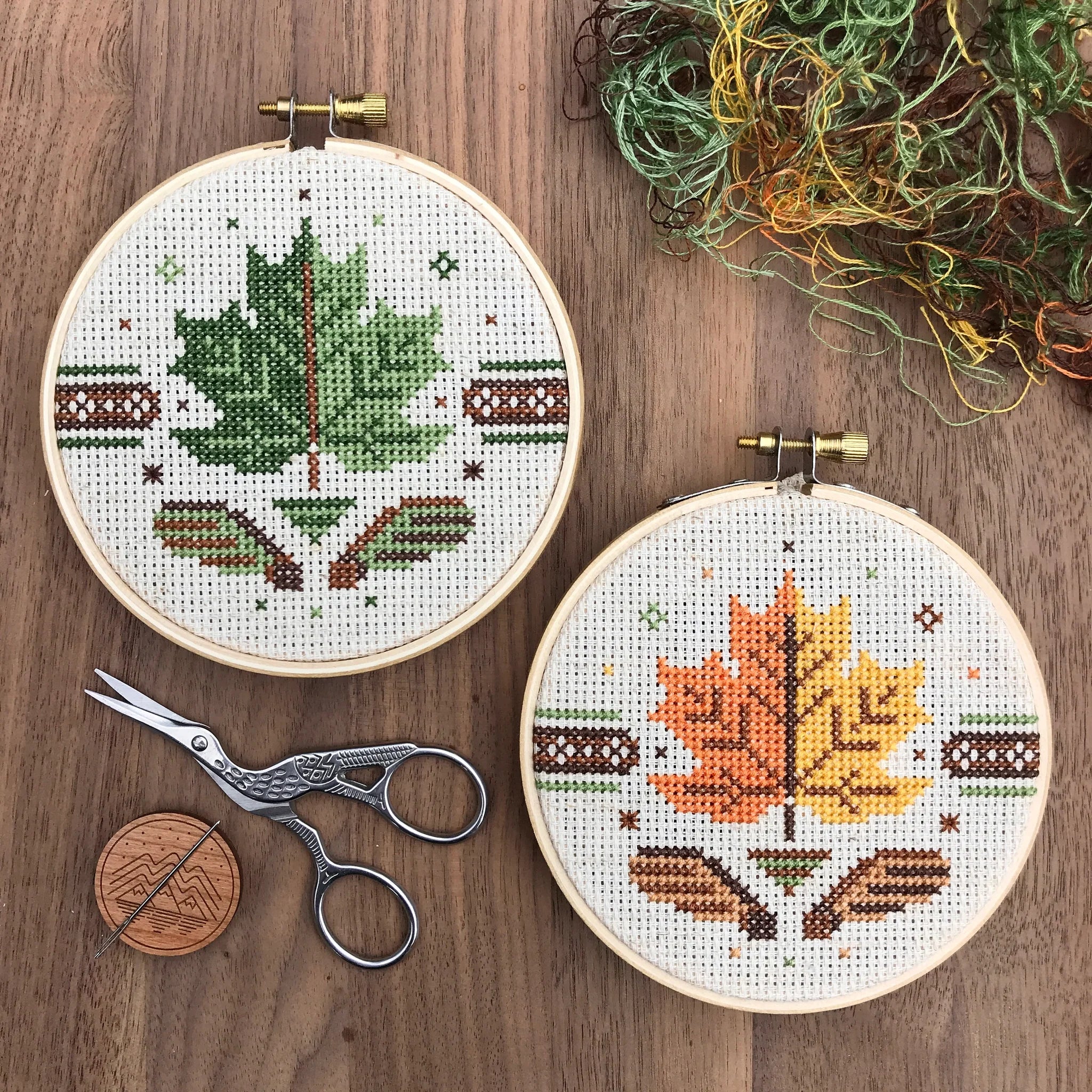 Fall in love with nature all over again with this 'Sugar Maple' cross stitch kit! Celebrate the stunning beauty of trees and woodlands, all while stitching your own leafy masterpiece. Plus, you get TWO vibrant color palettes to choose from—pick your fave or mix them up for a woodland wonderland!