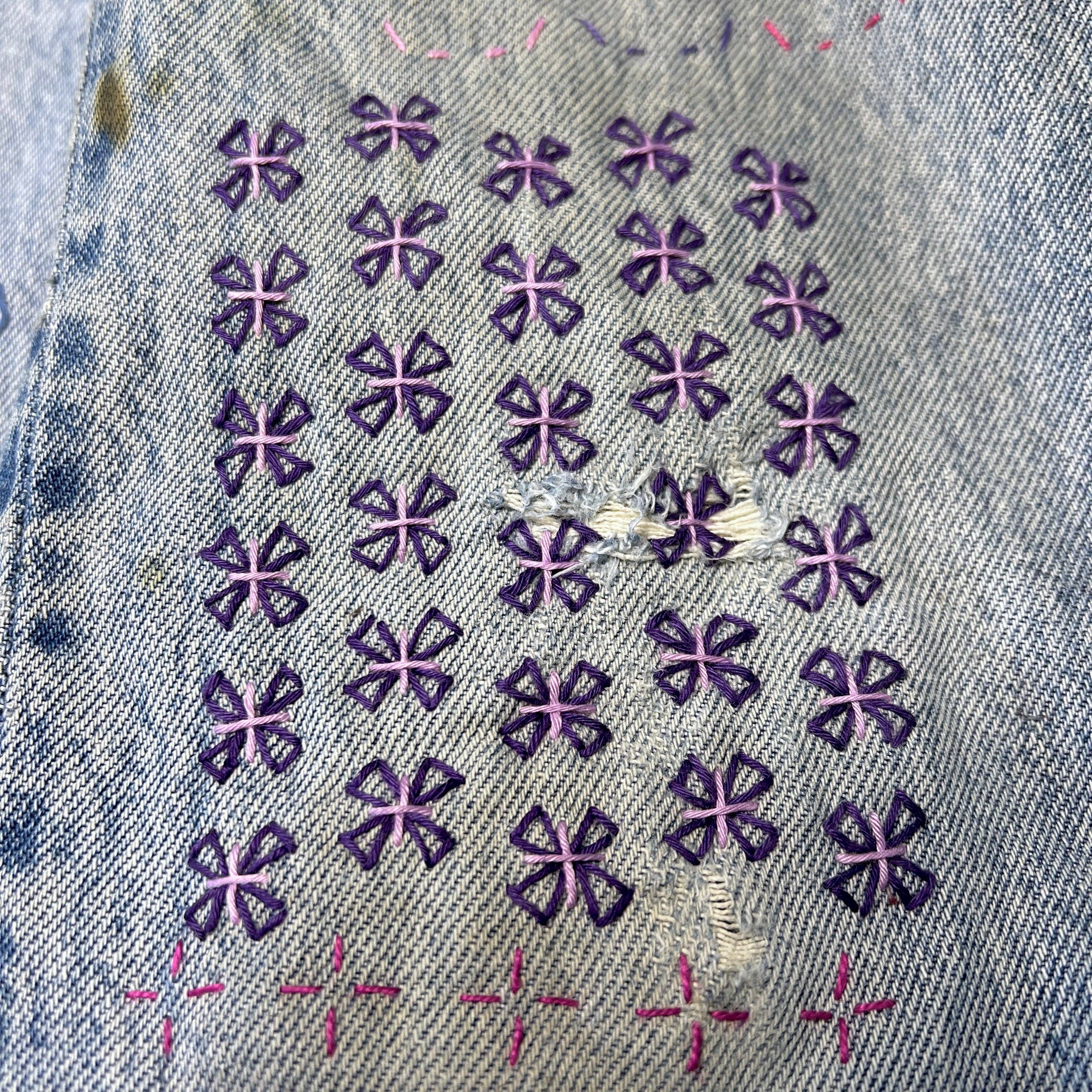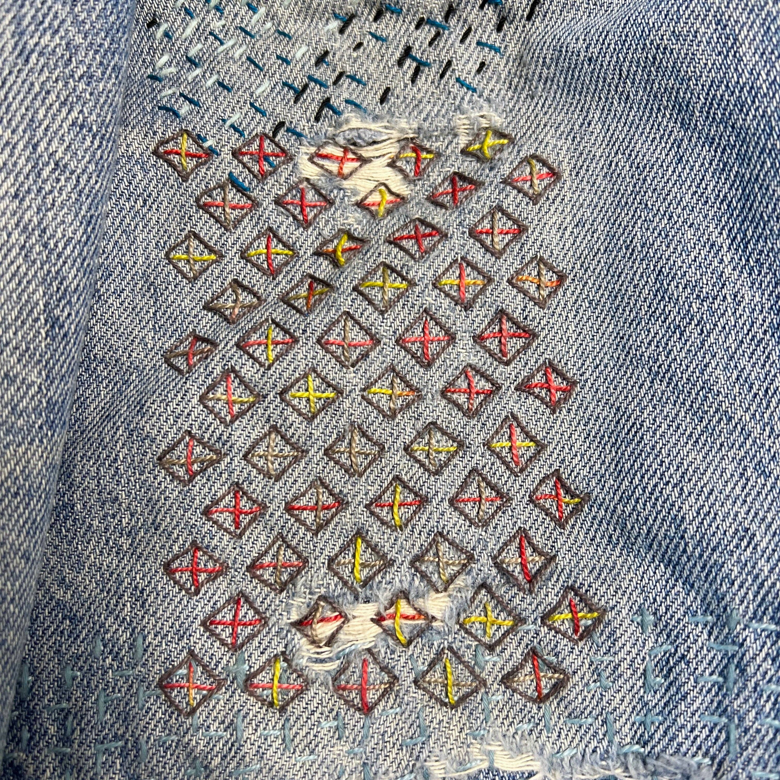 Stick, Stitch, & Rinse mending patterns. I created these water-soluble mending transfers for people like me who are looking for an easier way to transfer a beautiful pattern. No need for rulers and pencils, tracing paper, or an iron. Stick the transfer to the area to be mended, stitch the pattern, and then rinse off the sticker, and reveal your precise stitched pattern.