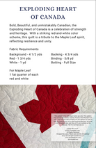 Included with the pattern are modifications to capture the essence of Canada’s national pride, giving you a quilt that bursts with joy and the unmistakable spirit of the Maple Leaf. Whether you're an experienced quilter or just starting out, the Exploding Heart of Canada quilt is sure to inspire you to create a masterpiece that speaks to your heart.