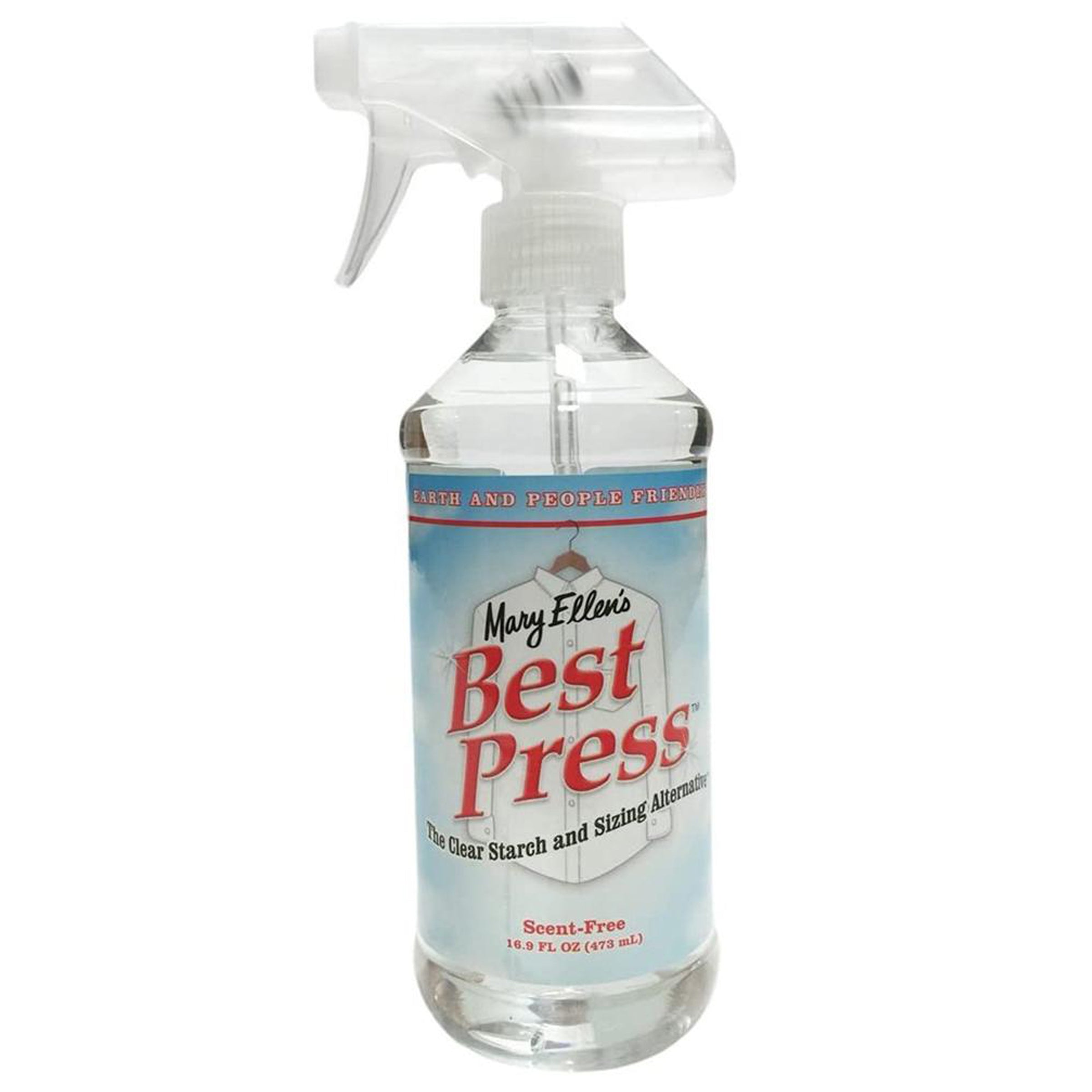 Best Press Starch and Sizing Alternative has been our best seller for years! With Best Press, there's no flaking, clogging, or white residue on dark fabrics! And more! A special stain shield protects fabrics, and the product helps resist wrinkles. Best of all, it's more effective than any starch you've ever used. Try Best Press today - you will never go back to ironing with ordinary spray starch!