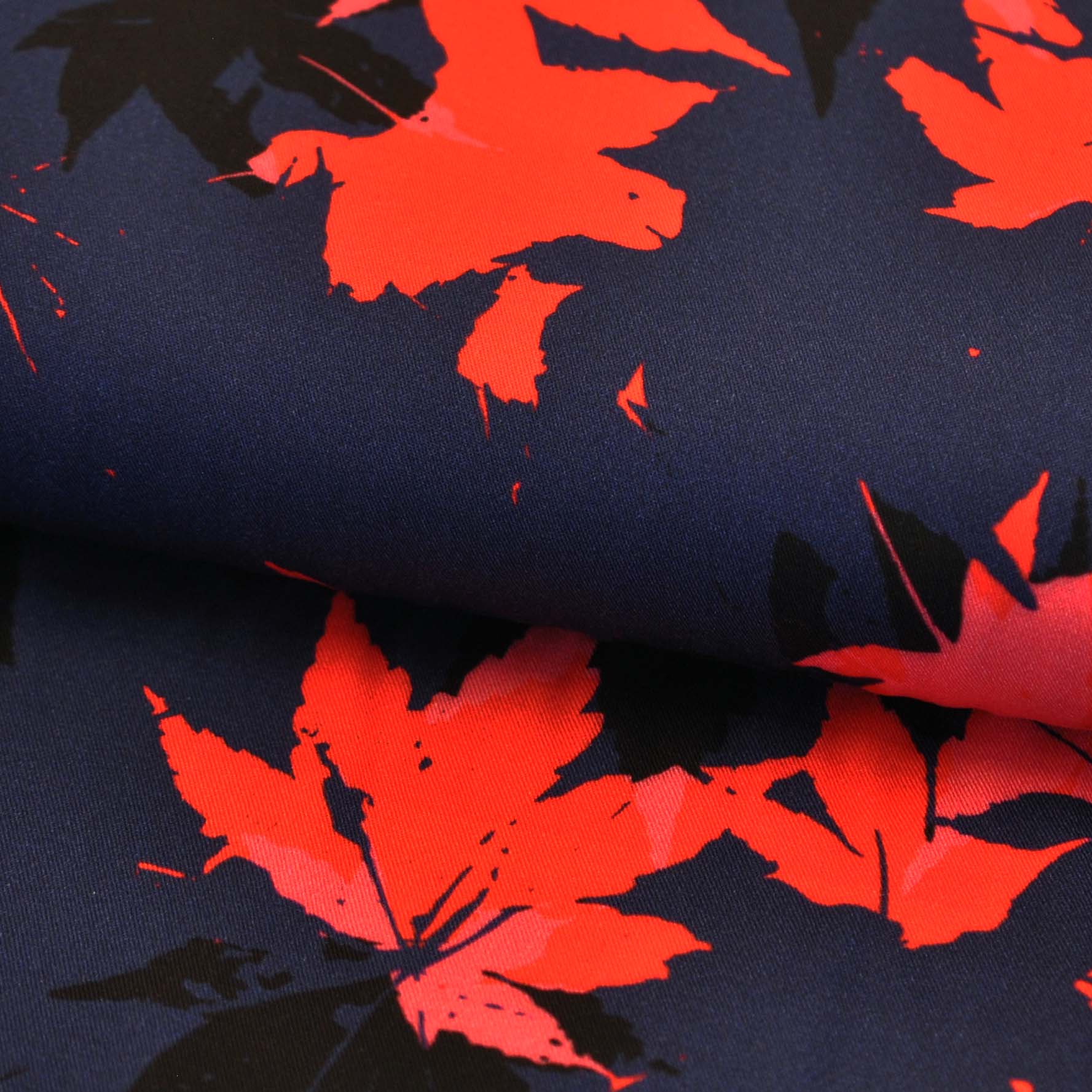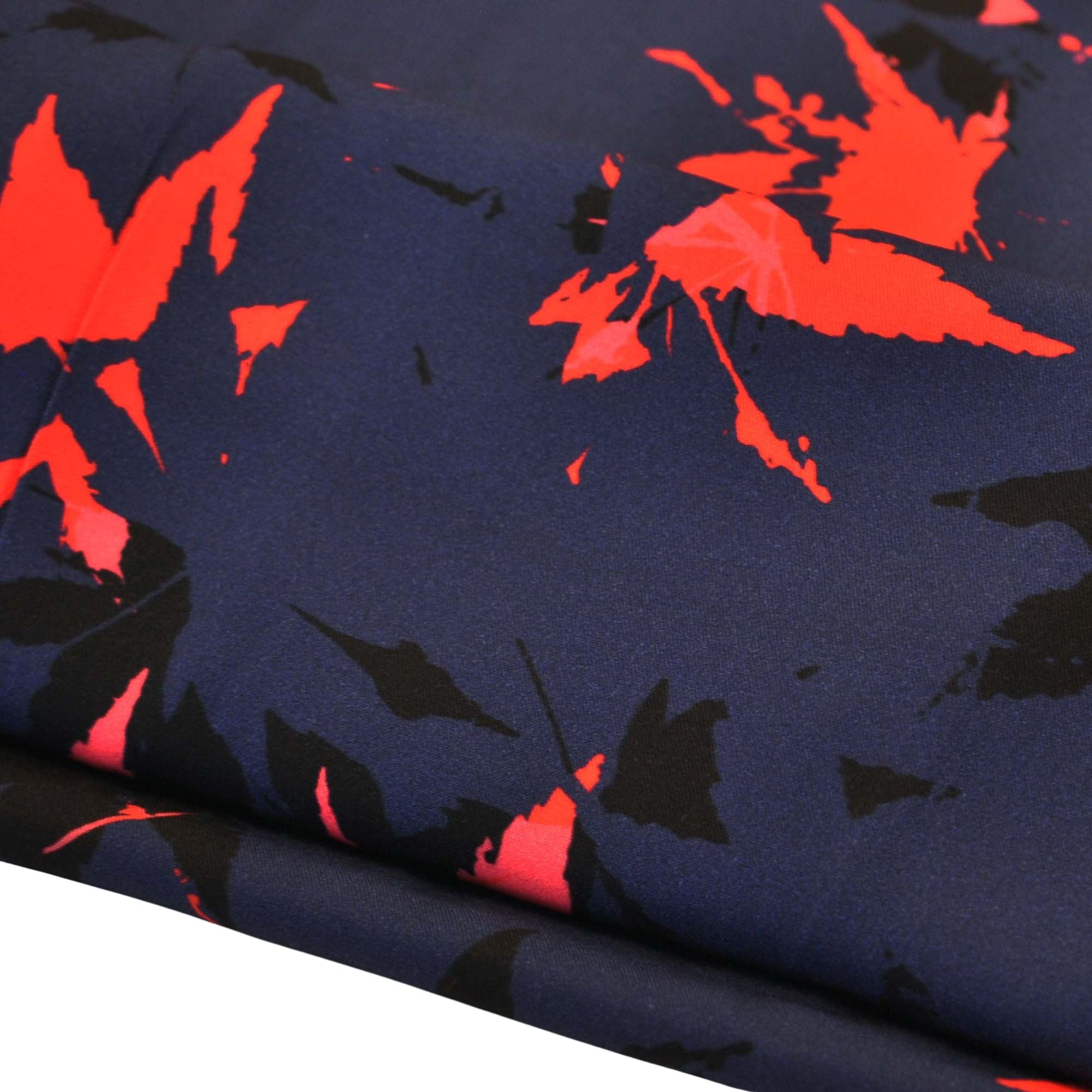 The "Acer" print is a symphony of abstract expression, blending vibrant reds and cool blues in a dynamic, all-over pattern. This unique graphic design captures a sense of modern artistry, perfect for those looking to create a statement piece with an eccentric, sophisticated flair.