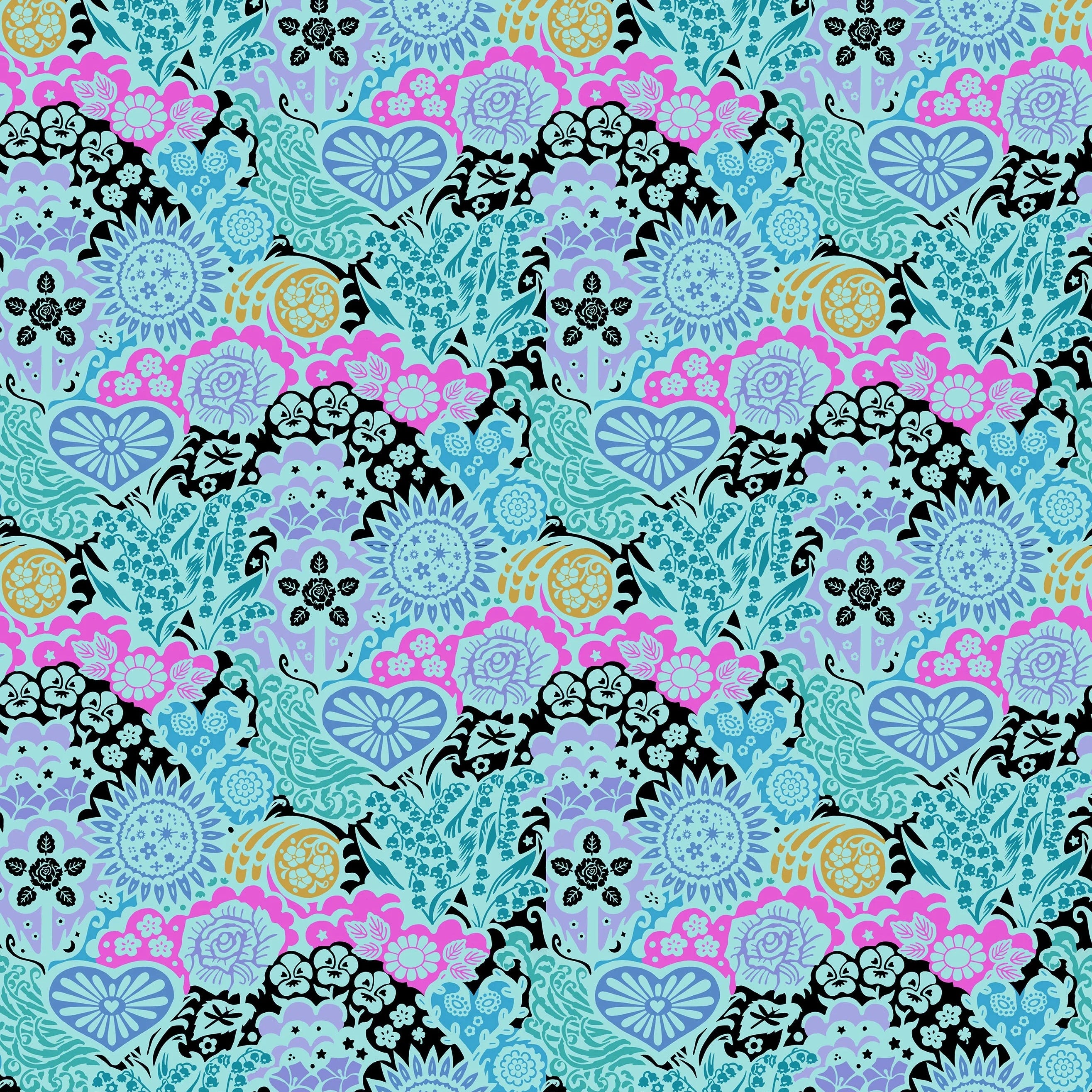 A lively, large-scale floral designed for Backings No.3 from Anna Maria Textiles, Euphoria Bouquet blends stylized blooms, hearts, and leafy motifs in a soft multicolor palette. The repeating layout creates a beautiful allover look that feels bright, warm, and expressive on any quilt. With full 108” width, it gives seamless coverage for backing and is striking enough for borders or feature piecing on the front.